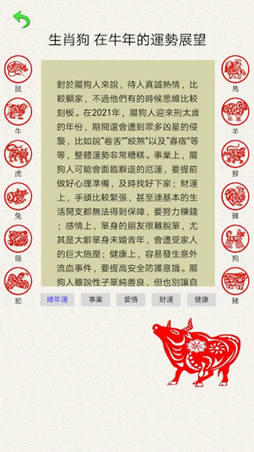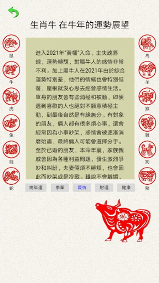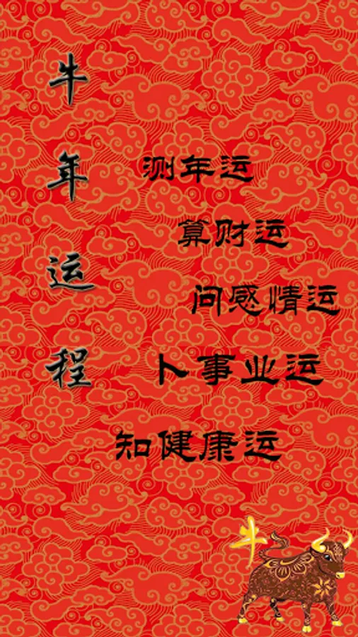 1. Choose the aspect you want to predict: the overall fortune of the year of the ox, career luck, love, wealth, health luck