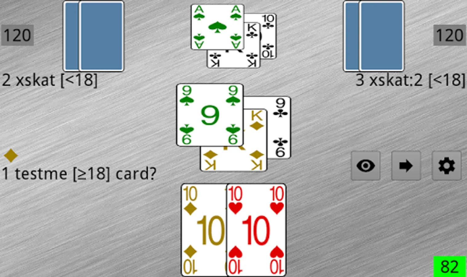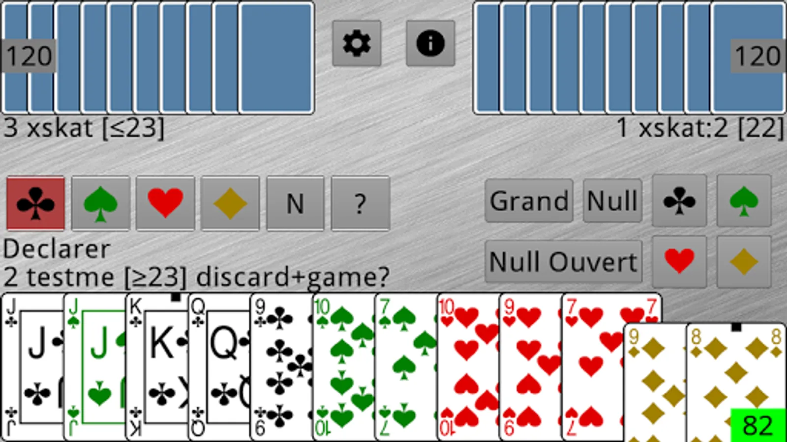 SkatGame lets you play Skat online with other players and programs. Skat is a popular 3-player trick based card game. The app features a "RushSkat" room in which players are matched randomly and vacant playing seats are filled with XSkat, a fast but not overly strong Skat program. In the "BotSkat" room you can play with XSkat and the "Muppets" kermit, zoot, and theCount, some of the World's best Skat programs - for free! SkatGame requires a data connection to operate. Before using SkatGame you are encouraged to make yourself familiar with the game rules by visiting web pages listed on the app's home page.