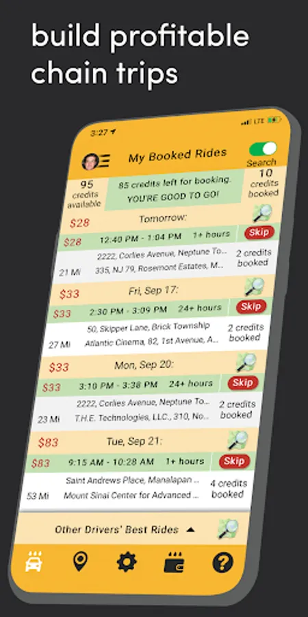 Skeddy is a ride-scheduling app for drivers that discovers scheduled rides near you and organizes them into a profitable chain trip.