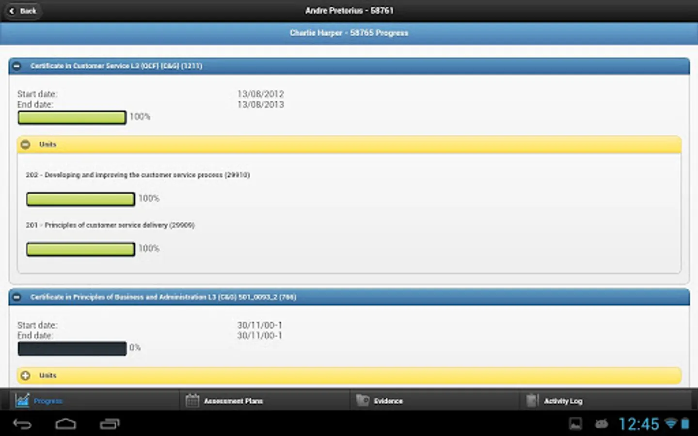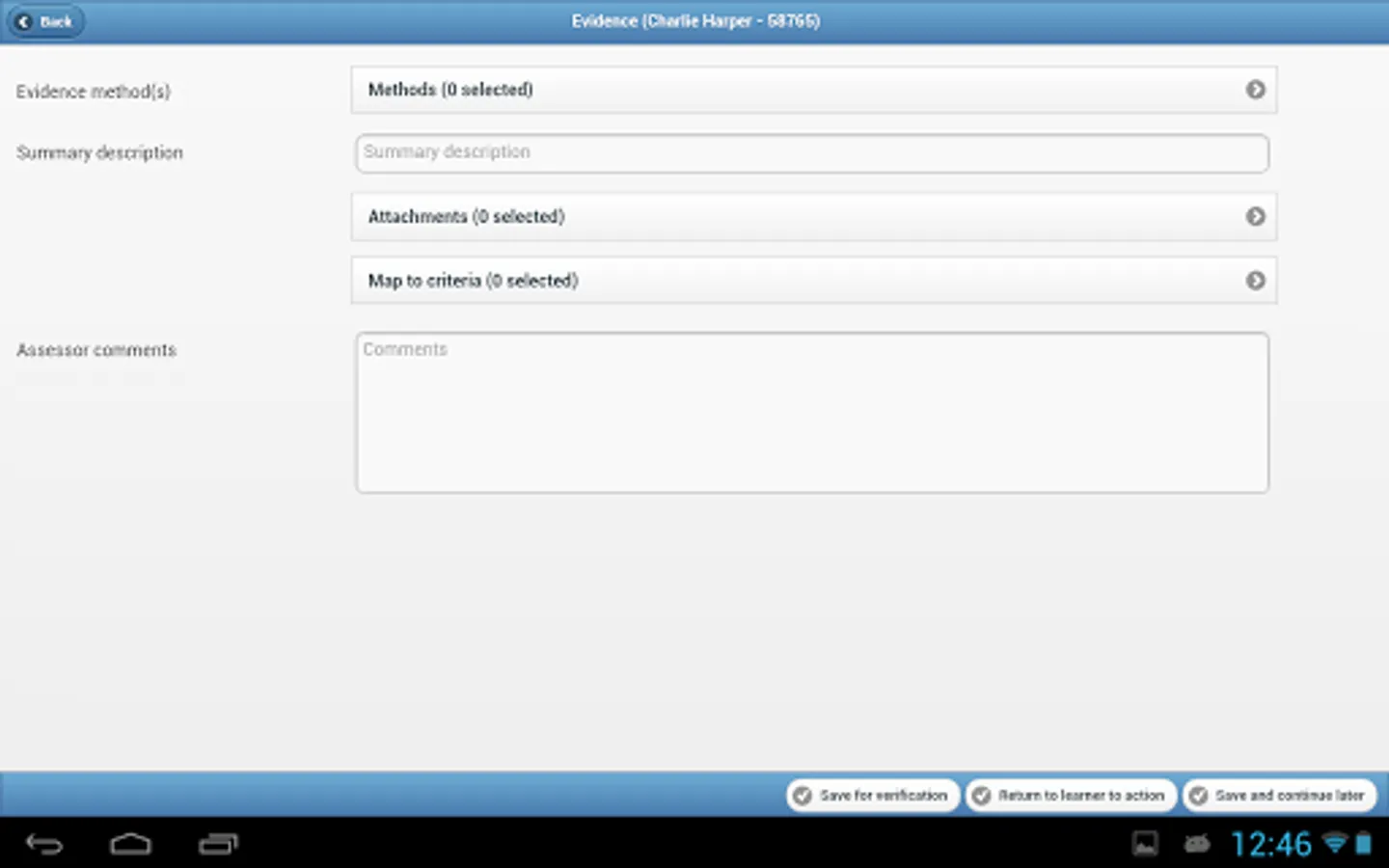 •Log new evidence against the learner’s specific qualification(s) and unit assignments
