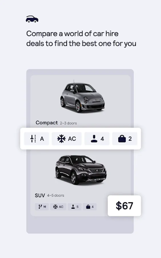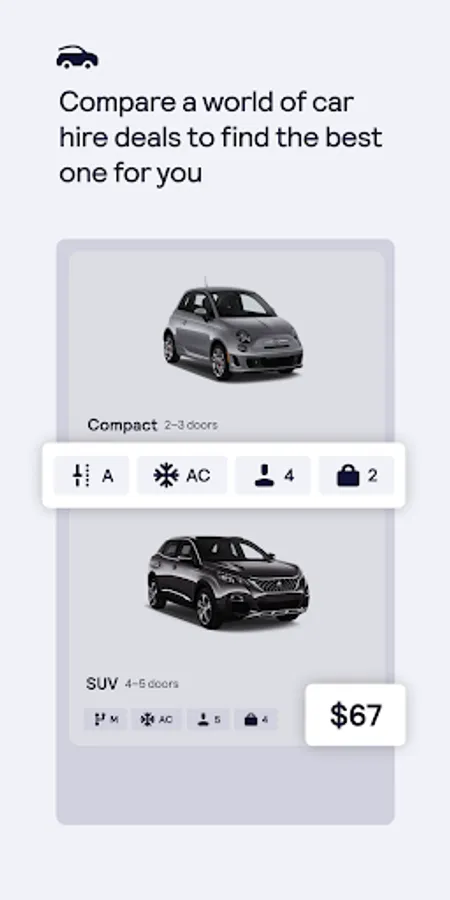 Choose where and when to pick up your car rental, and we’ll show you cheap prices and deals. You can filter your search by vehicle type, fuel type and features. And our Fair Fuel Policy flag will make sure you’re not paying too much on fuel – we’ve got your back.