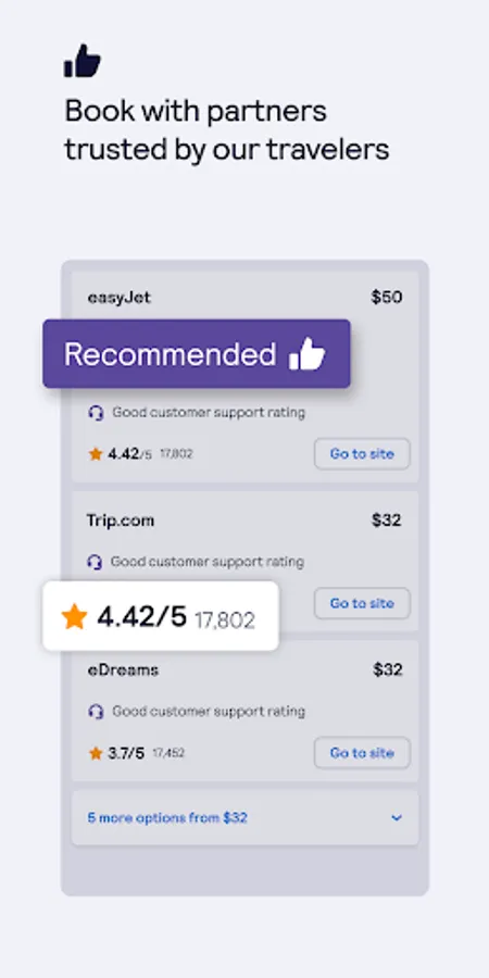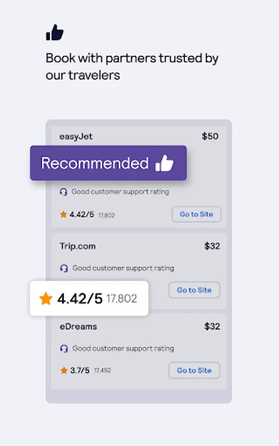 Compare all your top travel brands in one place – Spirit Airlines, United Airlines, American Airlines, JetBlue, Frontier Airlines, Delta, Ctrip, Expedia, Kiwi.com, Trip.com, Agoda and more. Plus, get recent reviews on our travel partners from our community of travelers.