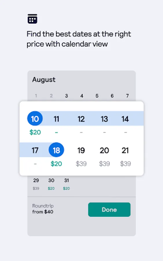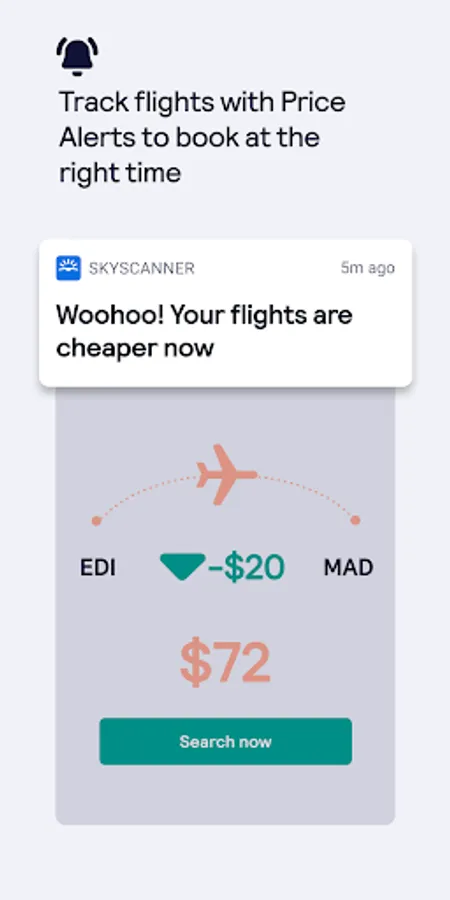 You’ve chosen where it will be, now to find the best dates to book your vacation. Our calendar view breaks down the cheapest dates in a chosen month so you can find the right flight deal. Not ready to book yet? Set up a Price Alert and we’ll let you know when the flight price changes so you’re always booking at the right time.