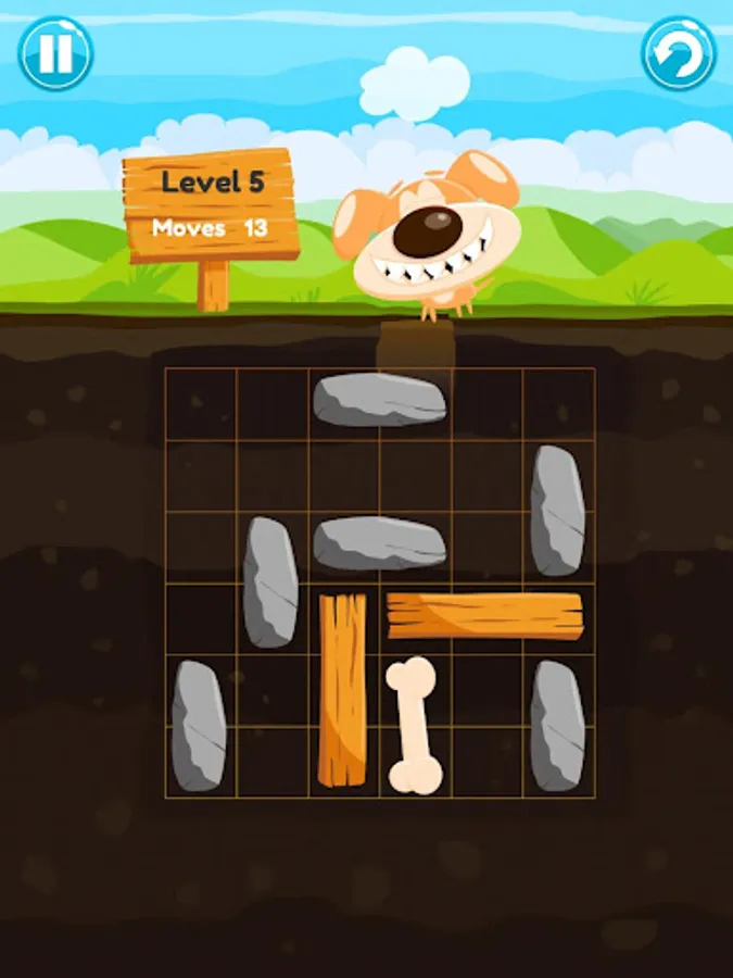 Benny the dog is the true master of hiding his bones. Unfortunately digging them out is a true puzzle. To help Benny you have to unblock the blocking rocks and other elements which create a true brain teaser for all kind of riddle lovers.