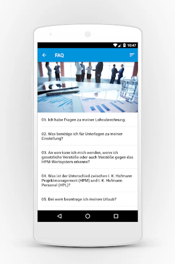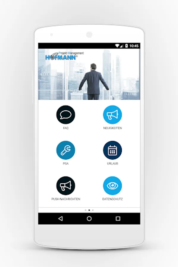 The new app from Hofmann Project Management is a powerful tool that makes your workday. Submit your vacation request at any time and from anywhere directly to us. You need personal protective equipment for your use? Then use our PSA form and we provide you with the necessary clothing and utensils. Through our contact directory you find the right contact with us quickly and easily. The new HPM-App. Your mobile line to us. Available for iOS and Android smartphones.