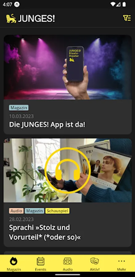 With the YOUNG! App we open up the world of theater to you - in front of, on and behind the stage.