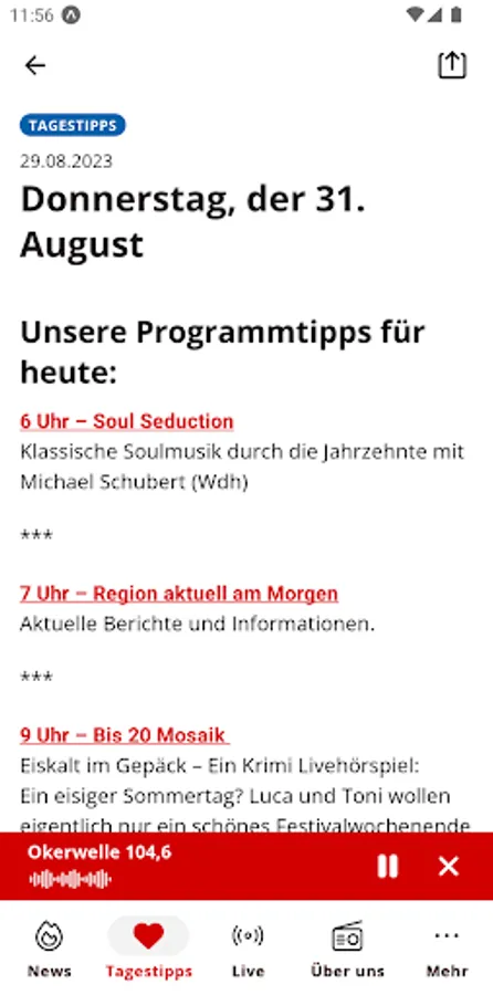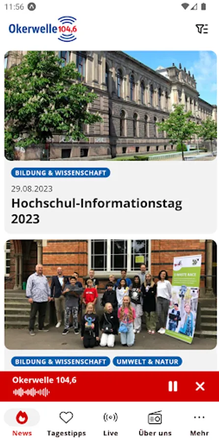 With our app you get your Okerwelle even closer. Listen to us live, anytime, anywhere, you will be informed directly about new developments in the region and remove easily with us.