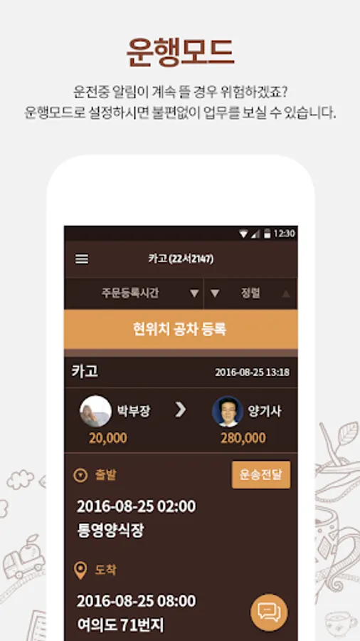 It helps drivers to share cargo transportation information with each other so that they can work as a transportation company.