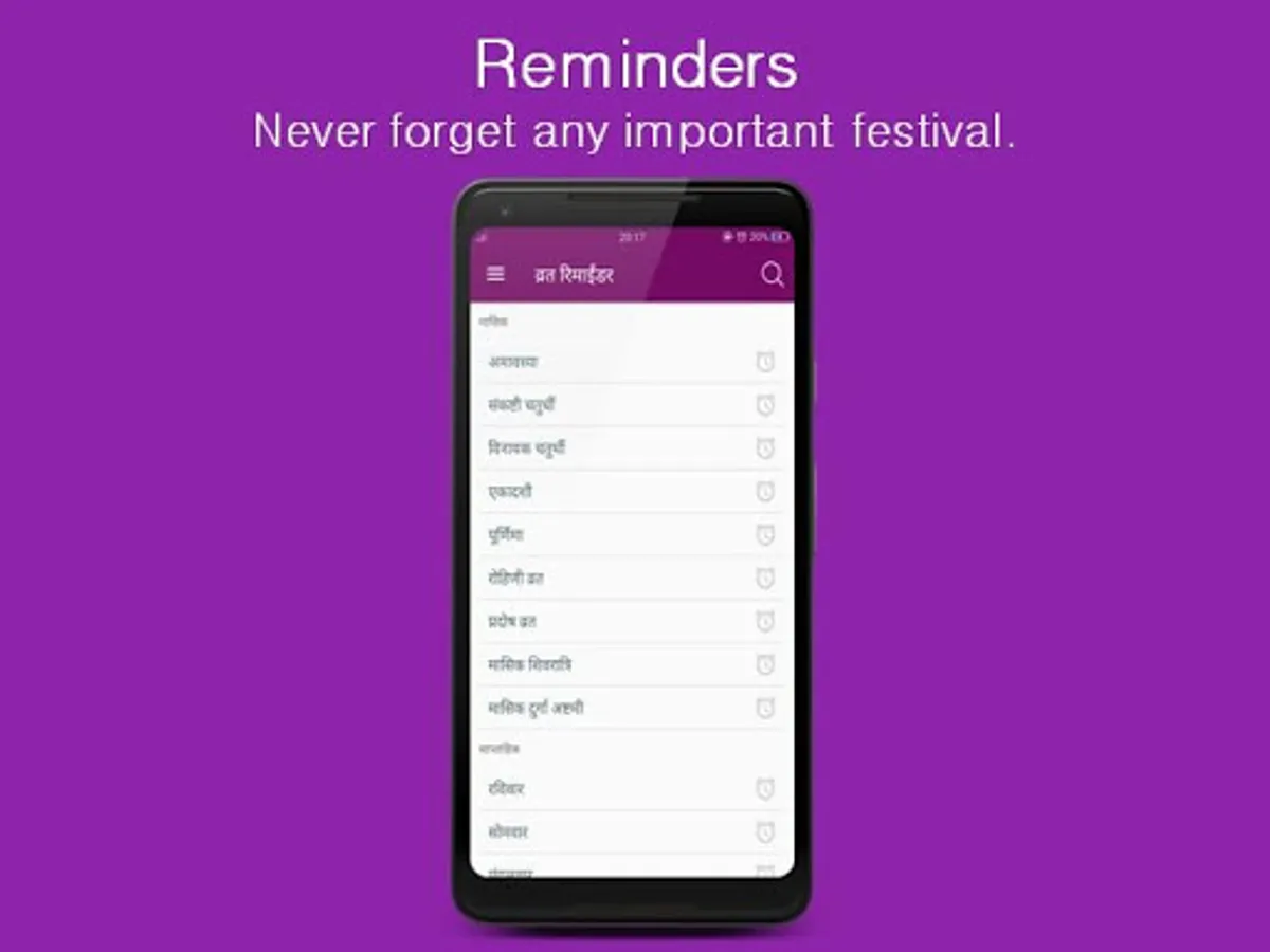 • Set reminders for Ekadashi, Sankashti, and Shivratri fast.
