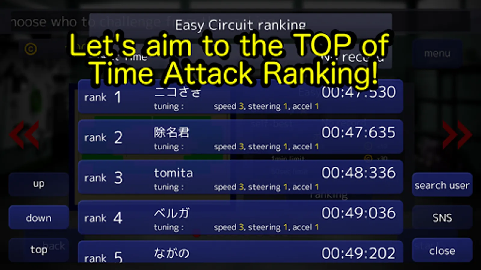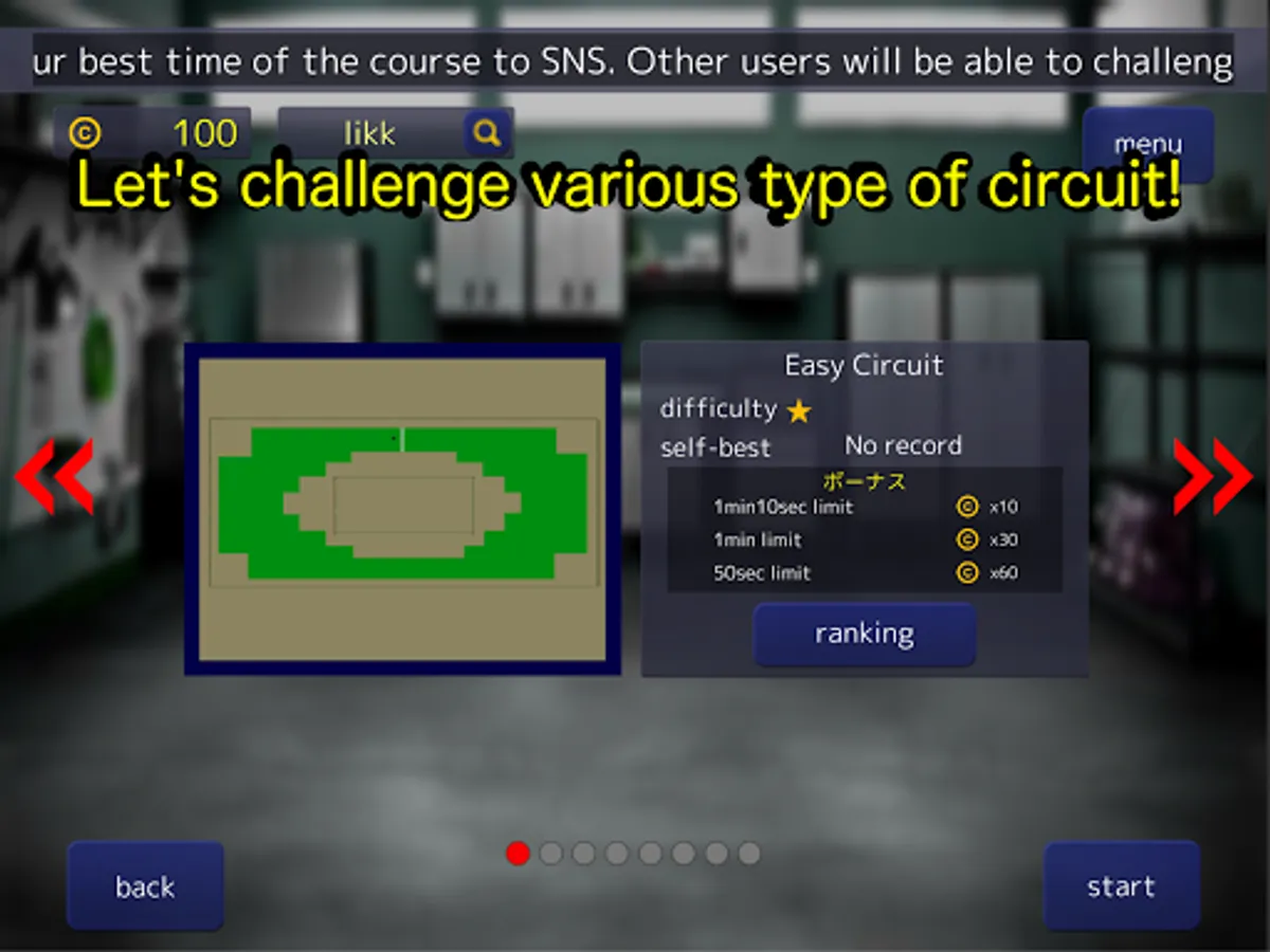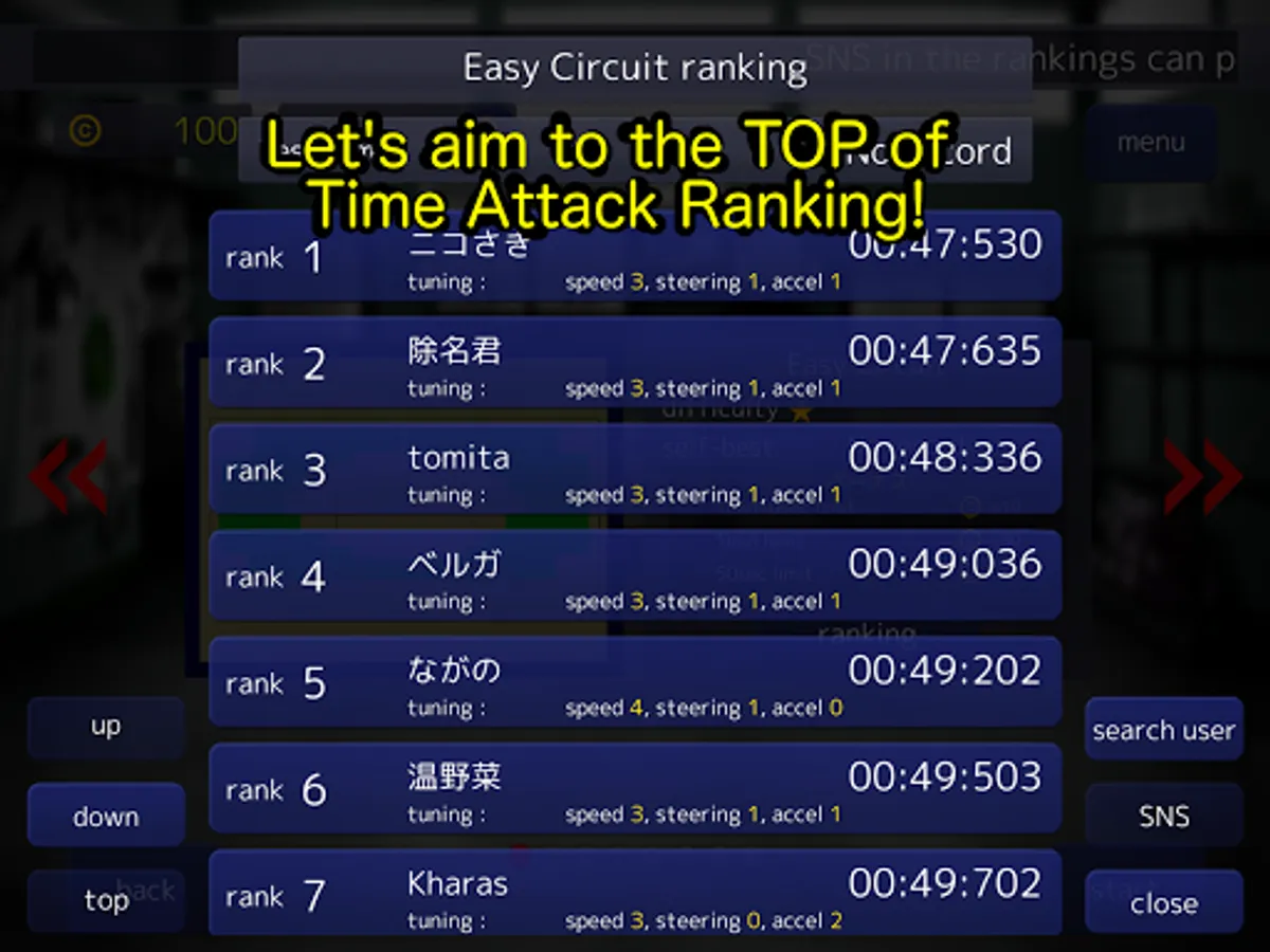 Let's challenge the time attack by making a circuit selection. It will be registered in the ranking in 3 laps of time.