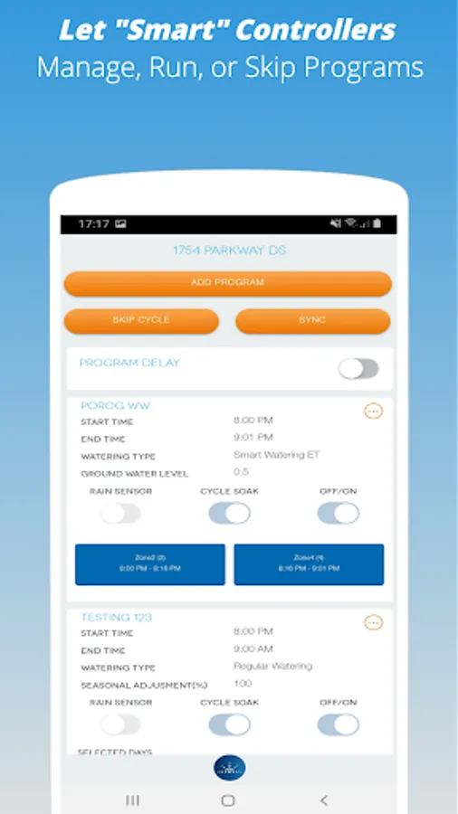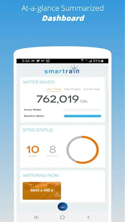 Smartrain mobile app is used to manage Smartrain's watering system which is equipped with advanced sensor technology and intelligent controllers. User can monitor every aspect of their water system. Not only can you manage your property’s irrigation system through smart water software—but you can also view detailed snapshots right on your smartphone.