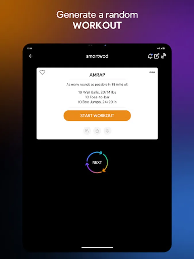 SmartWOD Workout Generator provides you random functional fitness workouts - based on the equipment you have available. Simply select the equipment, click on the "GO" button and browse through the workouts. Start the WOD ("workout of the day") and track your time directly within the app. As simple as that!