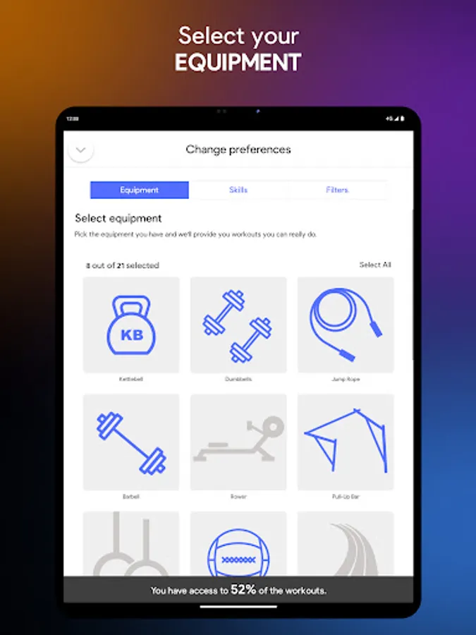 Working out while travelling and no barbell or no box in sight? No problem! SmartWOD Workout Generator will only use the equipment you have to generate a workout for you.