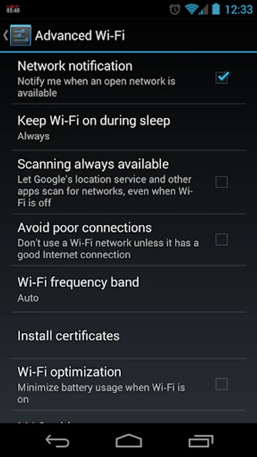 *** If you have problems with Android 4.3 / 4.4, be sure you have DISABLED (unchecked) the "Scan always available" option following path: Settings -> WiFi -> Advanced -> Scan always available ***