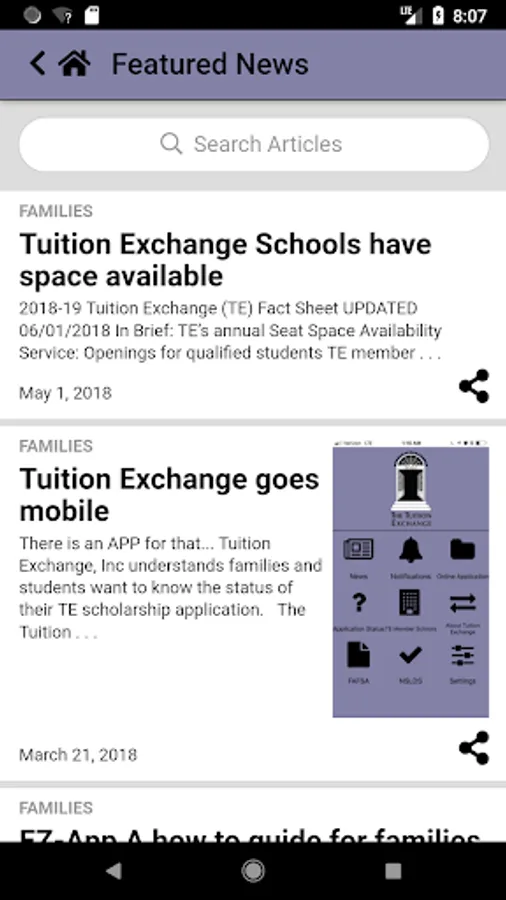The Tuition Exchange app is a great way to conveniently stay up to date on what’s happening. Some of the features of the app include: