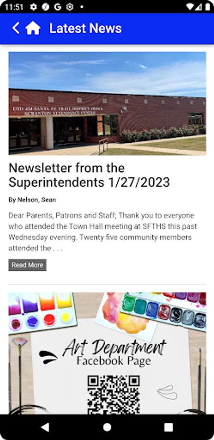 The Santa Fe Trail USD 434 app is a great way to conveniently access the most recent news, announcements, and events.