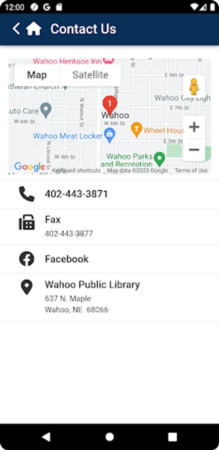 Contact Us provides maps of locations, a convenient way to dial important phone numbers, and provide other helpful information about Wahoo Public Library.