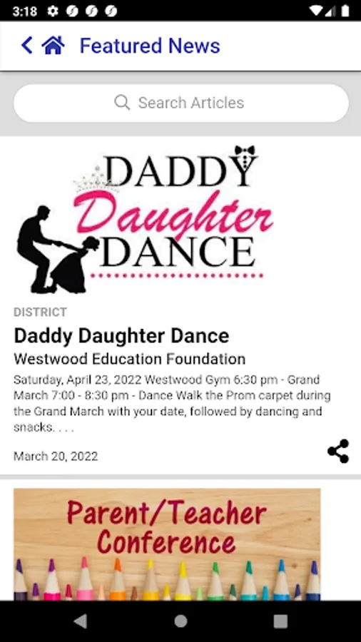 The Westwood CSD app is a great way to conveniently stay up to date on what’s happening. Some of the features of the app include: