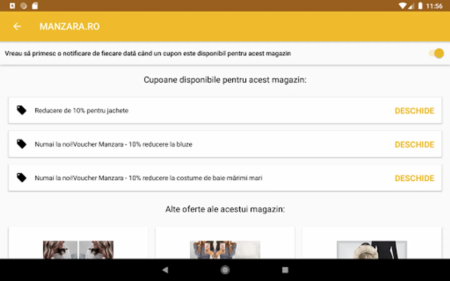 Passionate about online shopping? With the discount coupons application you are always up to date with the latest discounts from the most important online stores in Romania. Follow the stores that interest you and be notified every time an offer appears on the products sold by them.