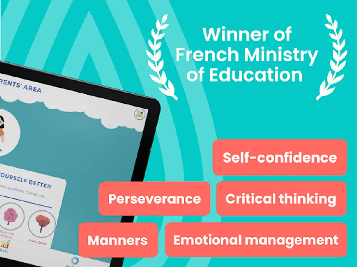 An interface, dedicated to adults (parents, grandparents, godmothers, baby-sitters, au pairs, etc.), allows you to follow your child's learning and progress. We also share tips and tricks in a library to help parents understand how to develop kids’ soft skills.