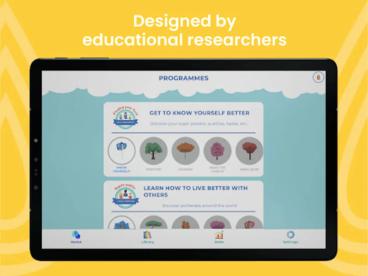 Each program is dedicated to study a skill and learning with educational games. The tools part of the application includes activities for the family. You will find audio sophrology exercises, challenges to do as a family (e.g. compliments) and strategy games to think about (Labyrinth, swipe, crossword, family quiz etc).