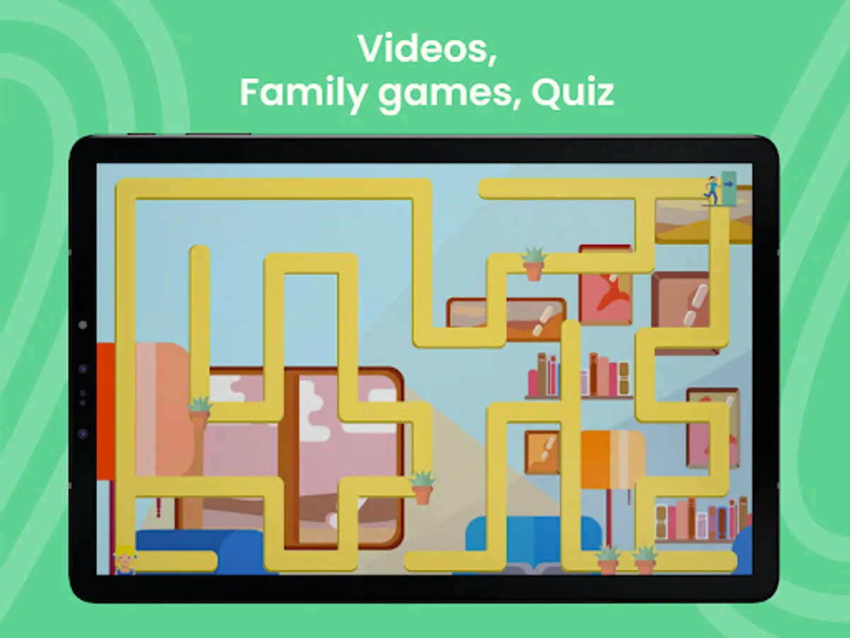Your child will do different activities adapted to his age (games for 6, 7, 8, 9, 10, 11, 12 years old) and he will learn to use the screen in a responsible and interactive way with activity, for example by answering a family quiz or playing educational games.