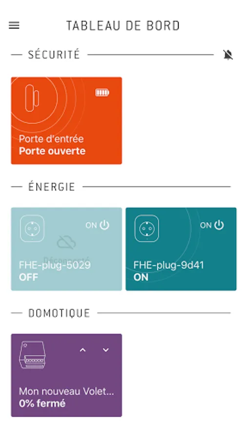 - Control of connected objects via Wi-Fi: socket, lighting management, roller shutter management, thermostat, heating & air conditioning and detectors (movement, door contactor, flood, smoke)