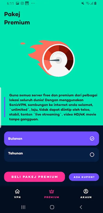 Provides free and premium VPN servers from various locations around the world! By using SonicVPN, your connection to the internet is secure, unlimited, fast, cannot be spied on by telco, stable, watch live streaming, HD video/4K movies without interruption. SonicVPN also provides a free server for use without account login or payment.