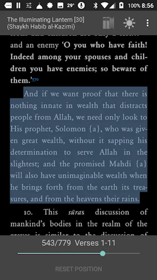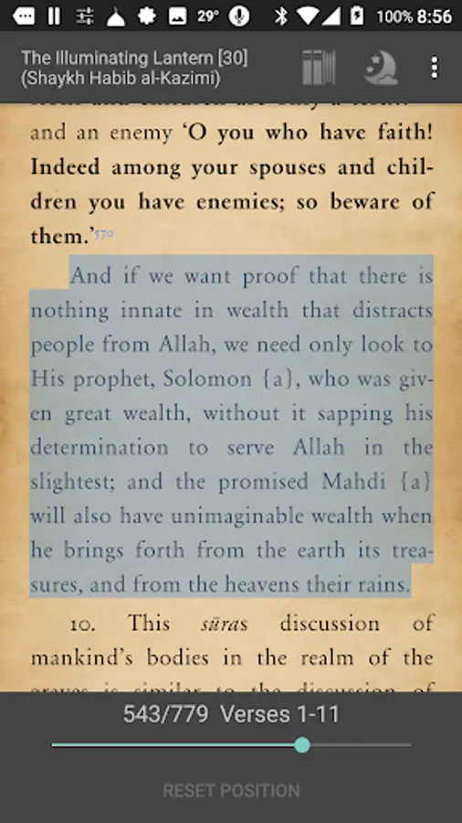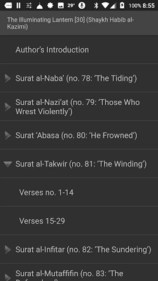 In this work the author tried to divide suras into collections of similar verses that share the same context and meaning, and then extracts the subtleties of their meaning in the form of selfcontained points. In doing so, shaykh Habib al-Kazimi wanted to help the reader to focus on each individual idea and ponder upon it, even if he only has a little time to do so, whether in his home or while travelling, so that he could be someone who ponders (mutadabbir) on the Quran and benefits from its verses in his movements towards Allah, just as Allah Himself expects from all free-willed individuals.