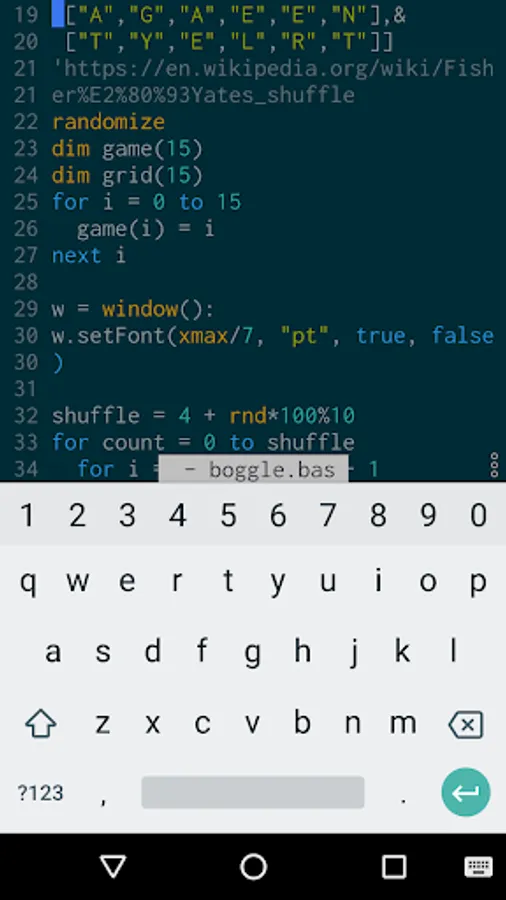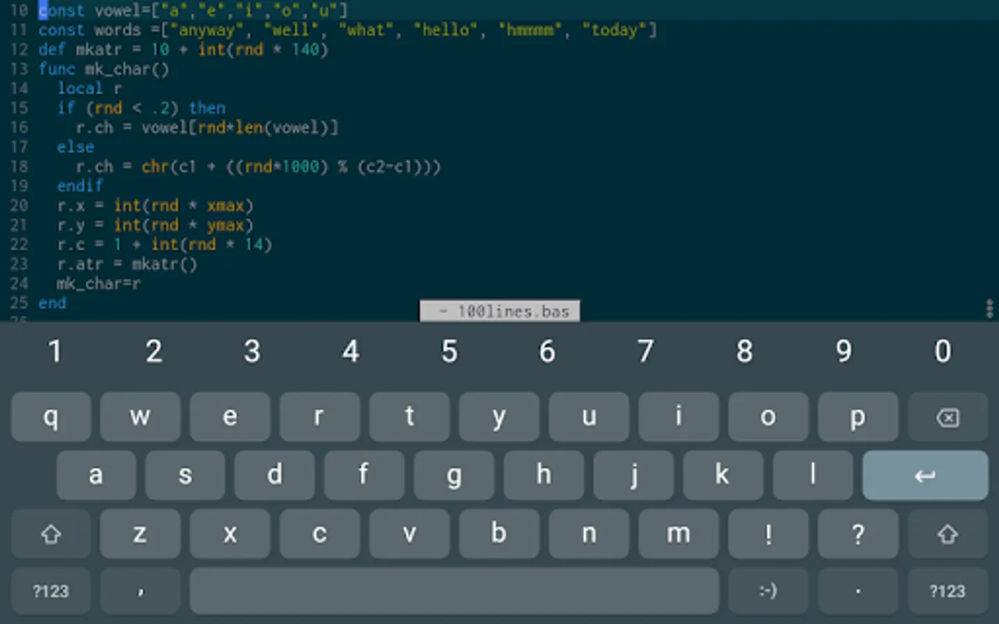 SmallBASIC works well with "Hacker's Keyboard" available separately.