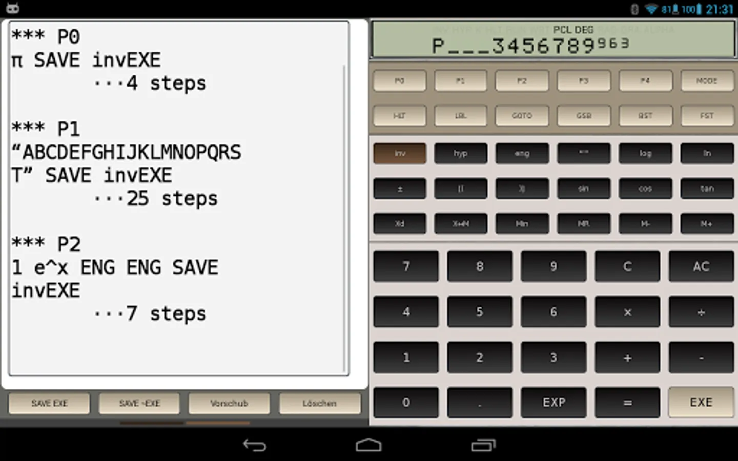And last not least the FX-602P simulator is fully programmable. You can write up to 10 programs, using 110 registers.