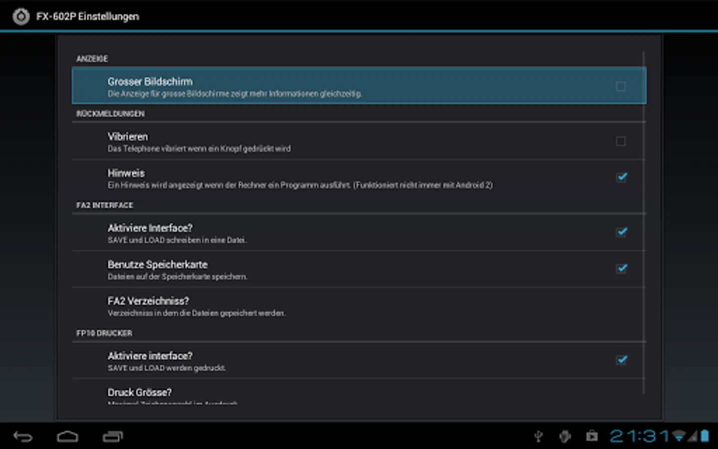 With the build in FA-2 cassette interface simulation you can save and load programs and data to your thump drive for later use. Or printout results with the FP-10 thermal printer simulation and then copy / paste them to other applications.