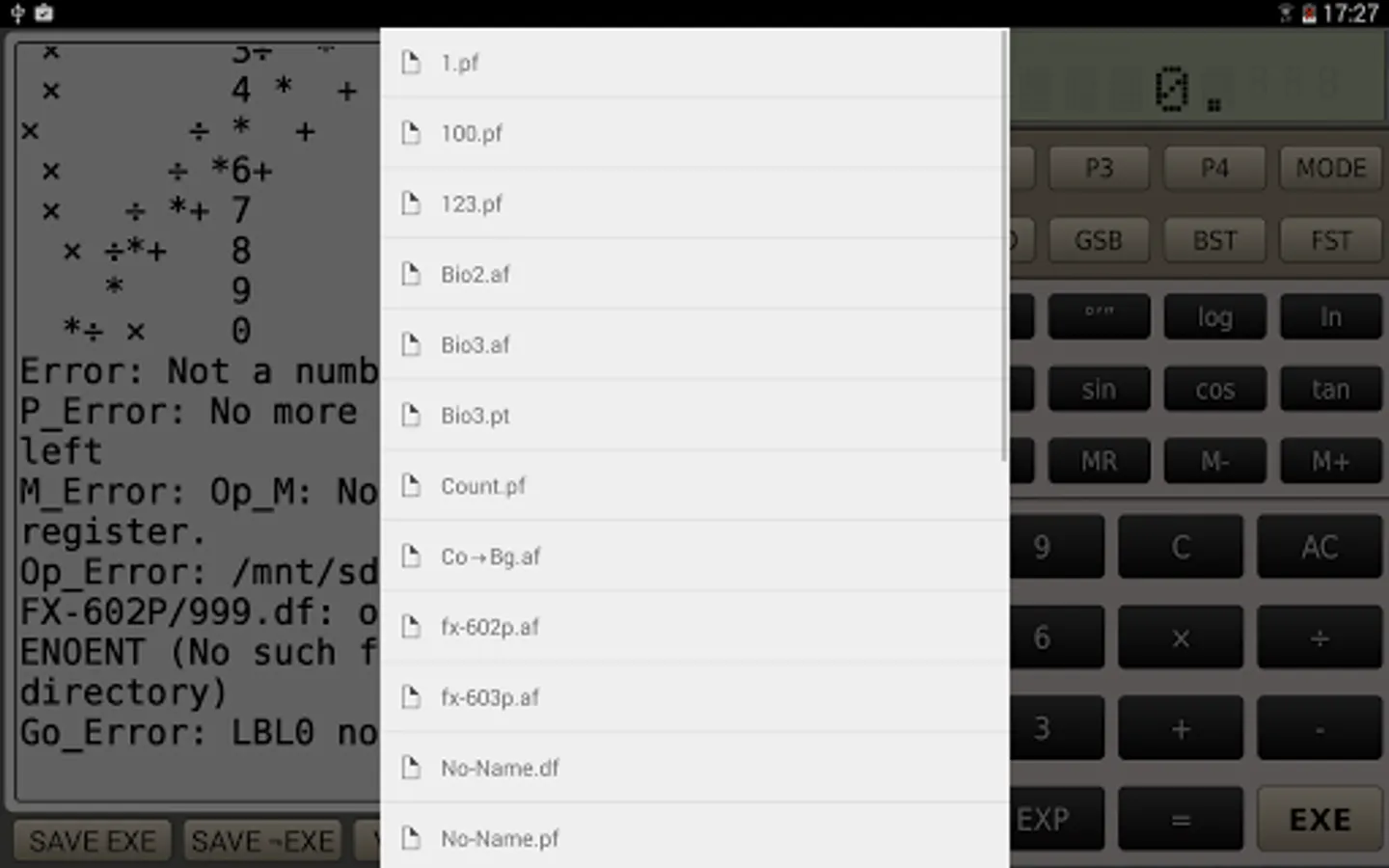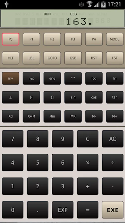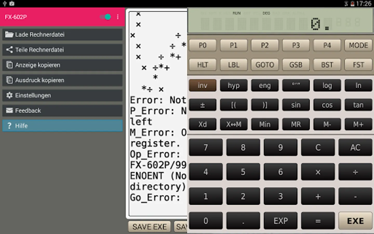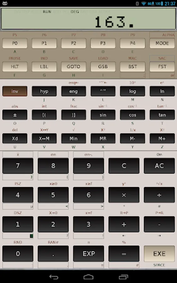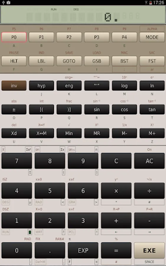 Used as a calculator the FX-602P simulator will exceed most other calculator available. The FX-602P simulator supports all arithmetic, trigonometric, logarithmic, hyperbolic, statistical functions and all alphanumeric display options of the original calculator.