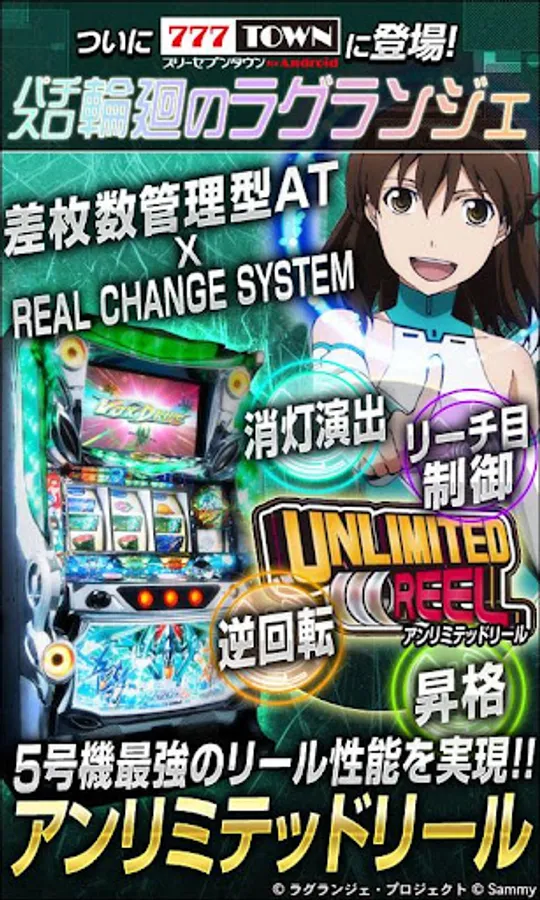 Based on the popular robot anime that was televised in 2012, the hall-introduced "Pachislot Lagrange" is now available on "777TOWN mobile"!