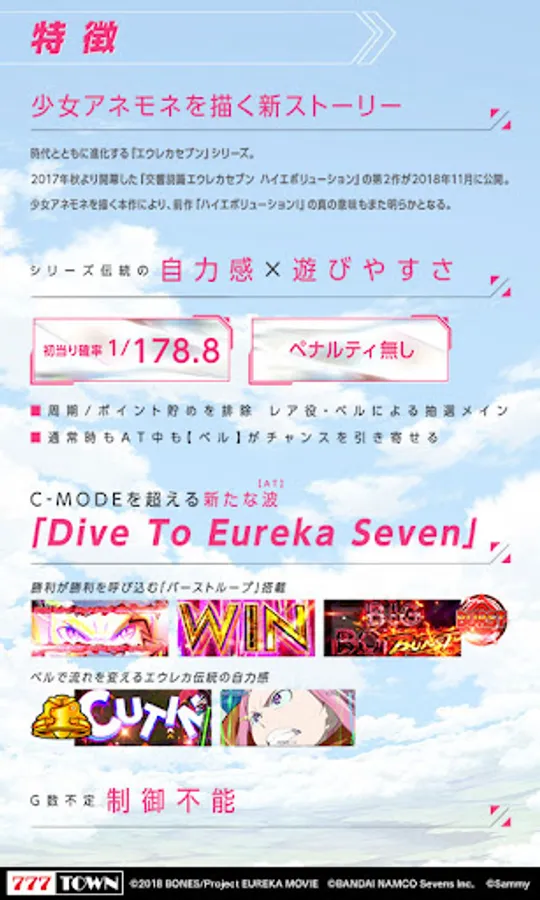 "Pachislot ANEMONE Symphonic Psalm Eureka Seven HI-EVOLUTION" is finally available on 777TOWN mobile!