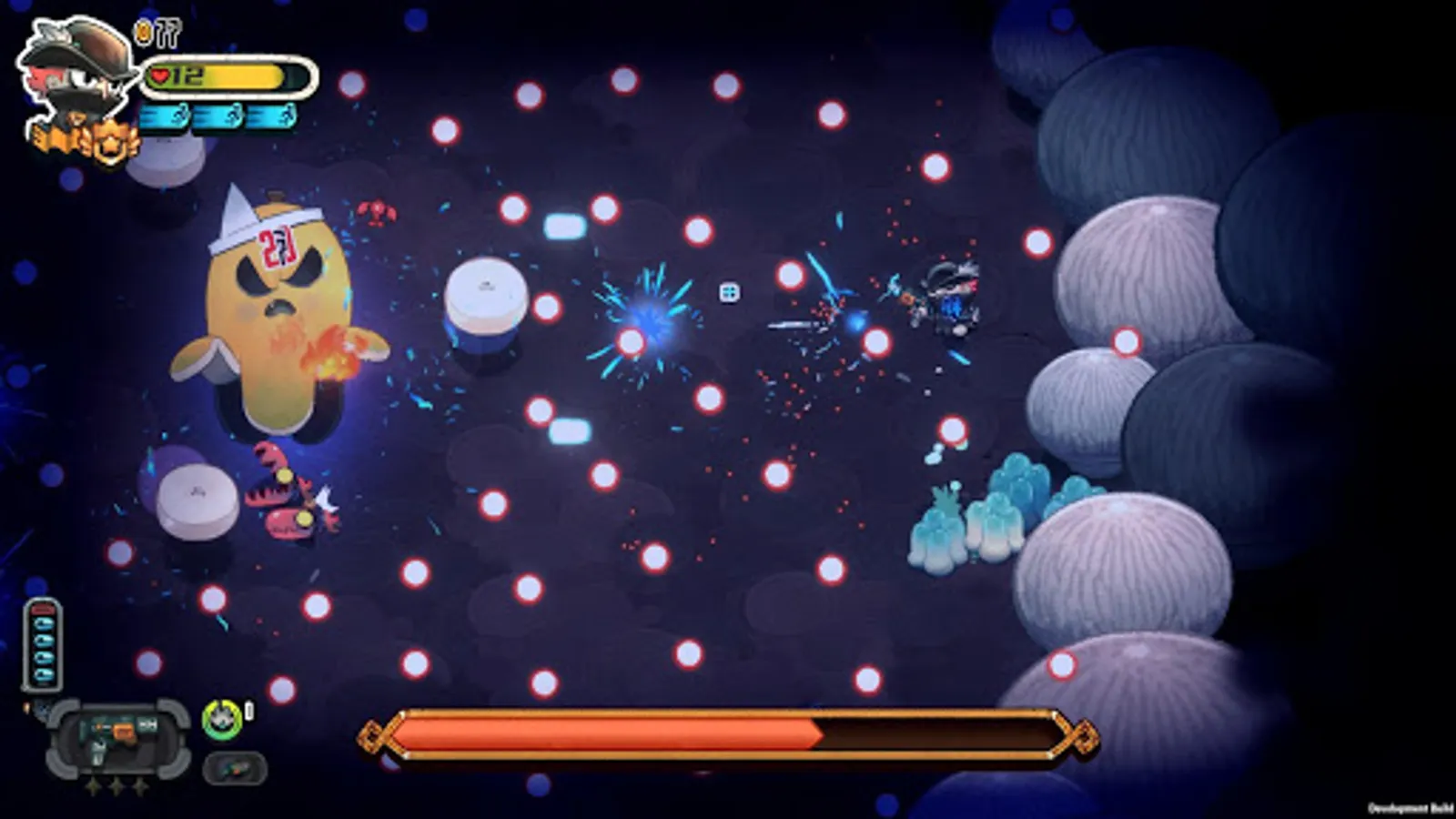 As one of the first explorers of the newly discovered plant empire, you must continuously drive deeper and deeper into the enemy's lair. Defeat bizarre and colorful fruits while retrieving new gear, weapons, and resources to defend yourself and expand your base camp.