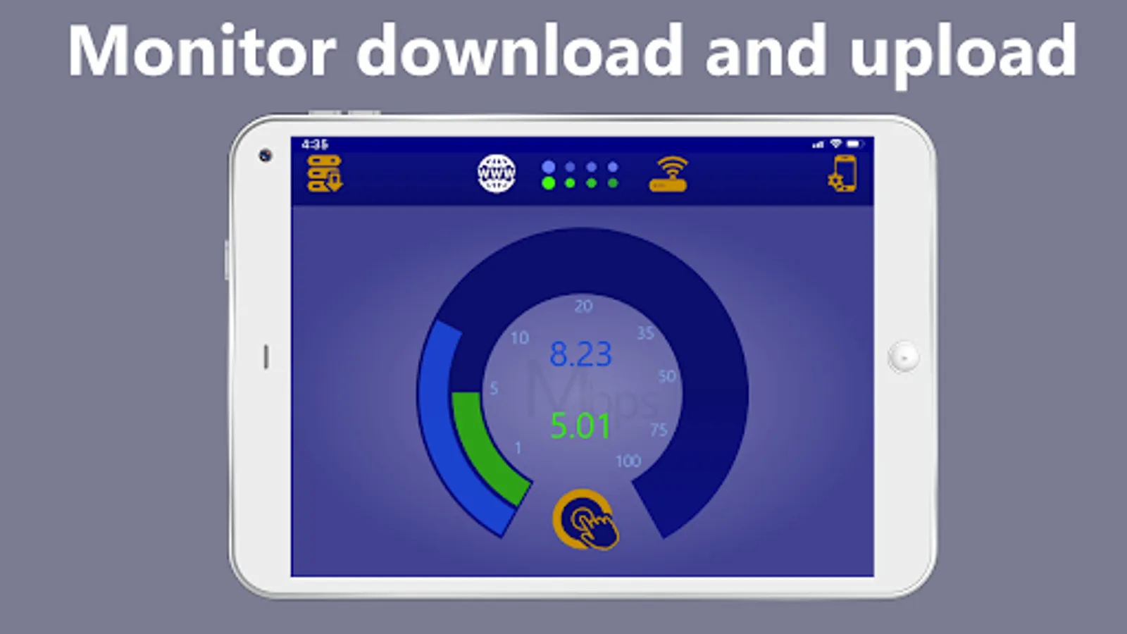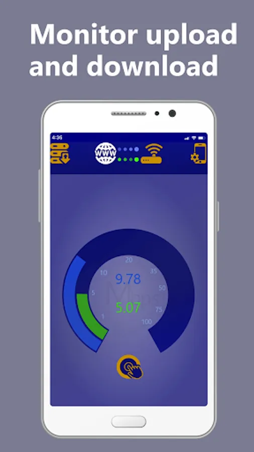 • Accuracy. Real time download (blue) and upload (green) speeds are real time based on the total traffic reported by your WiFi / WLAN router or modem, and therefore include all www traffic, not just the speed test. Also included is the overhead that is stripped, and which normal speed test apps can only estimate.