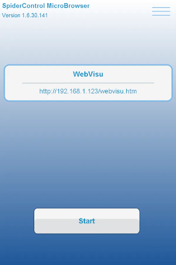 The SpiderControl MicroBrowser App is a viewer for HMI's designed with CODESYS or SpiderControl Editor (or any compatible OEM version).