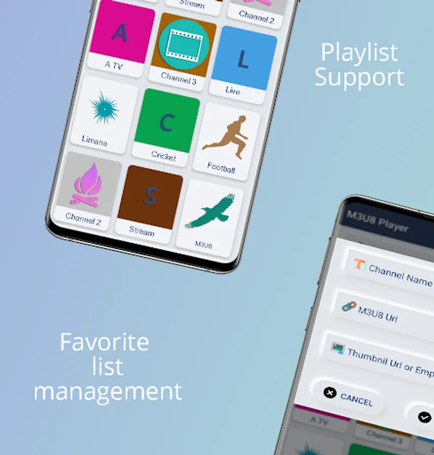 Watch your favorite IPTV from your IPTV provider or free streaming TV channels from any other source on the internet. A powerful app to stream online channels and IPTV, m3u, m3u8 files. M3u8 player It's a completely free app and does not require any subscription or payments.