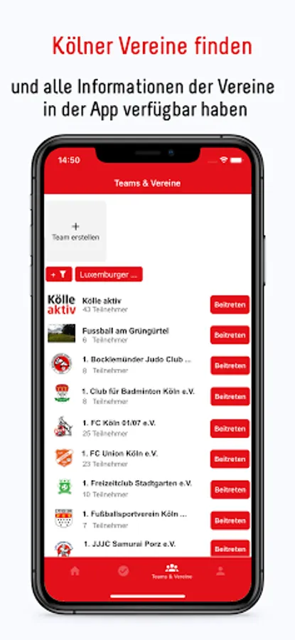 In this app, information and contact details for our sports clubs, as well as all information about locations, times or target groups are compactly summarized. The SportinKöln app also allows you to search for sporting events, holiday programs, Kölleaktiv and much more.
