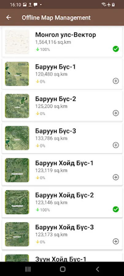 - The offline base map is divided into 5 regions (West, North West, North East, East and South) and the user can download the required regions depending on your mobile phone capacity.