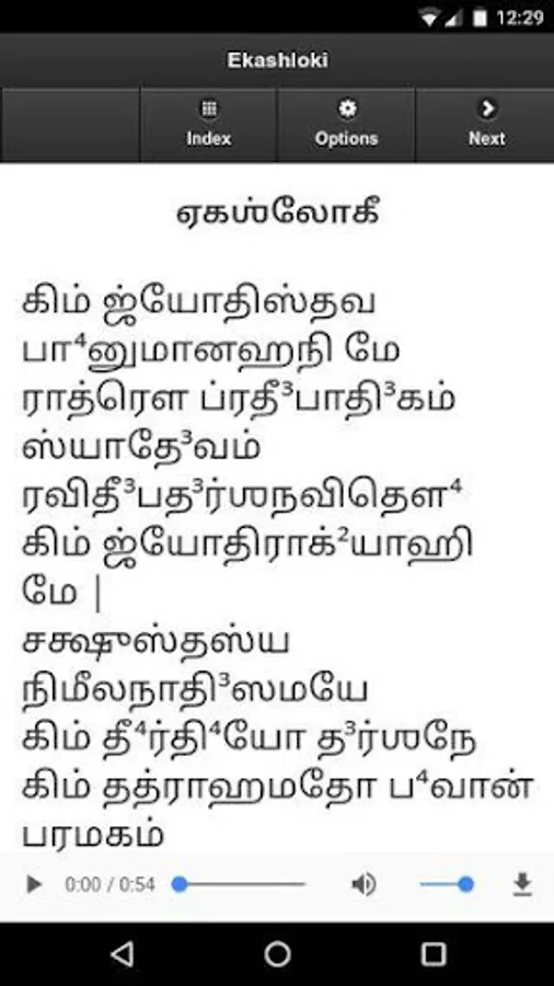Contains complete text of the stotras in Devanagari, Kannada, Tamil, Telugu and Malayalam along with audio.