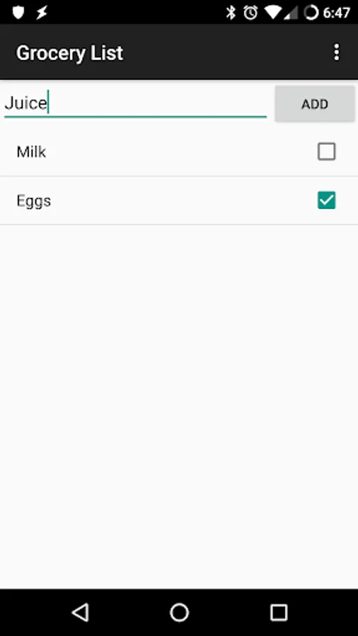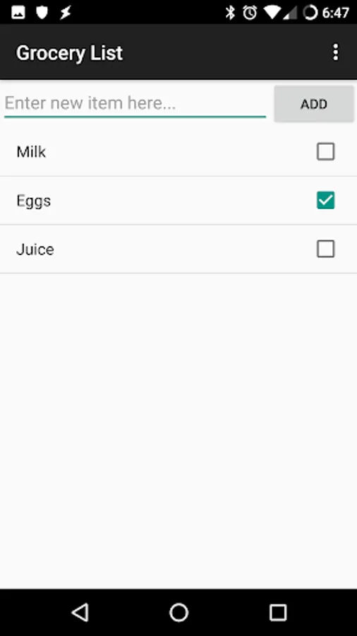 A very simple shopping list application. For now, it only manages a single list, and is designed to work as a check-list of items to get when you go out shopping. The app uses the standard Android widgets and functionality for simplicity and more intuitive interaction. In this version there are no settings (there's really nothing to configure yet) and is designed to be very easy to use.
