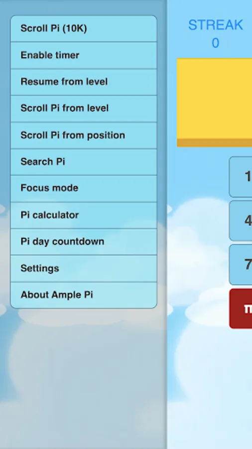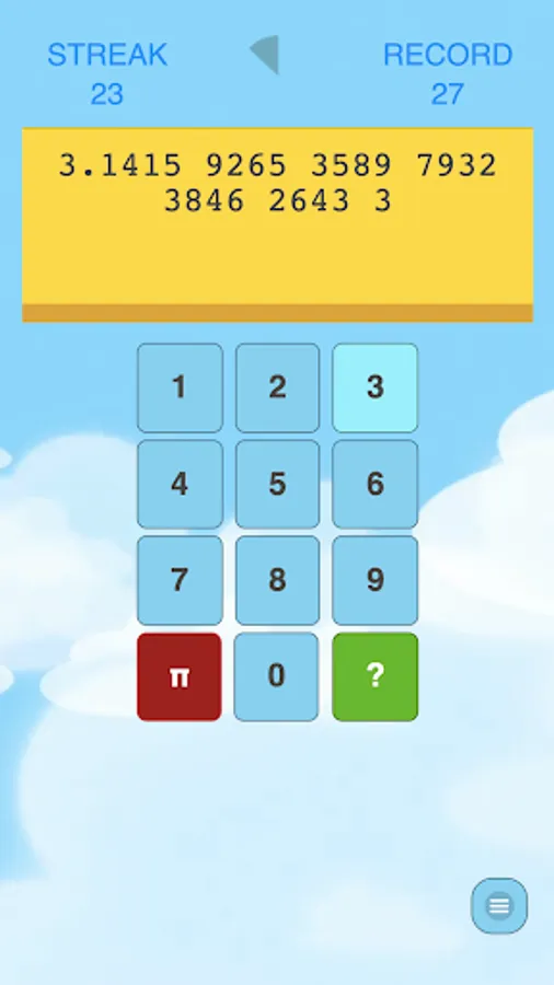 The scoring system progresses your level every 10 digits and allows you to resume Pi from your last level.