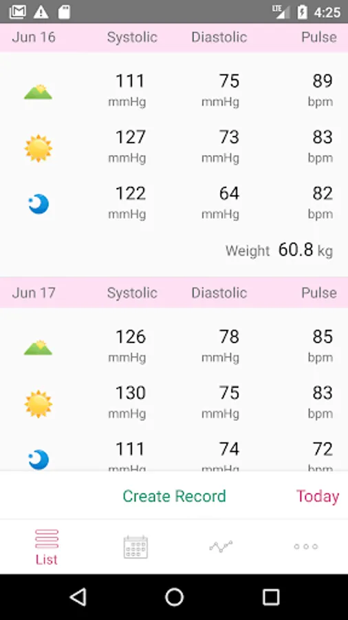 • Can record your blood pressure and pulse rates in the morning, noon and evening, as well as your weight on that day.