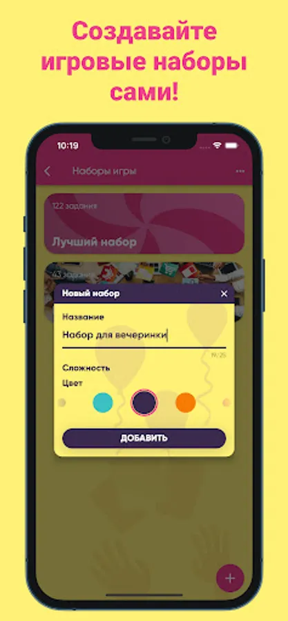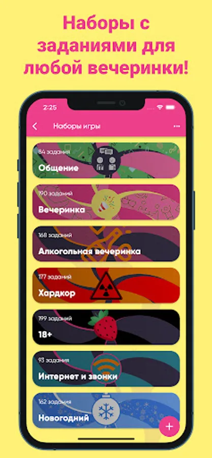 Add players to the game, choose sets with tasks and start the game! Each one in turn performs the task that fell to him. At the end of the round, the best