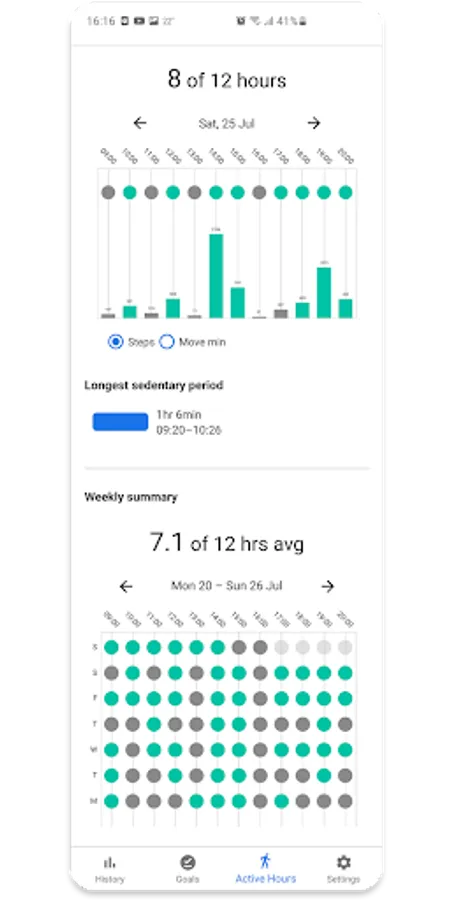 - Ability to view past days/weeks of the day and week view in the Active Hours tab