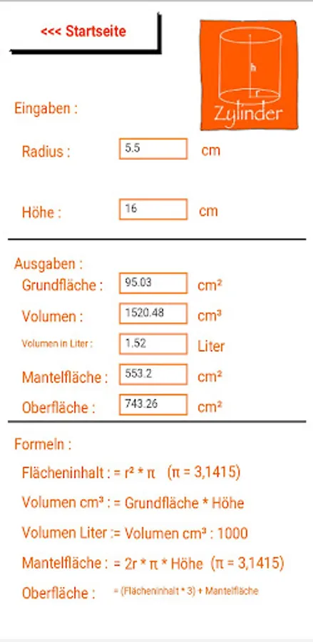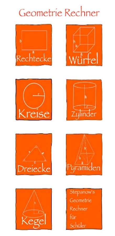 The geometry calculator can be used to calculate rectangles, cubes, circles, cylinders, triangles, pyramids and cones. The corresponding formulas are also displayed. The app is aimed at students and is completely ad-free.
