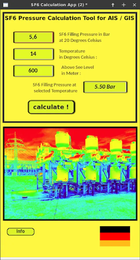The app calculates the filling pressure of SF6 switchboards GIS / HIS / AIS as a function of the temperature and the installation height of the substation above sea level.
