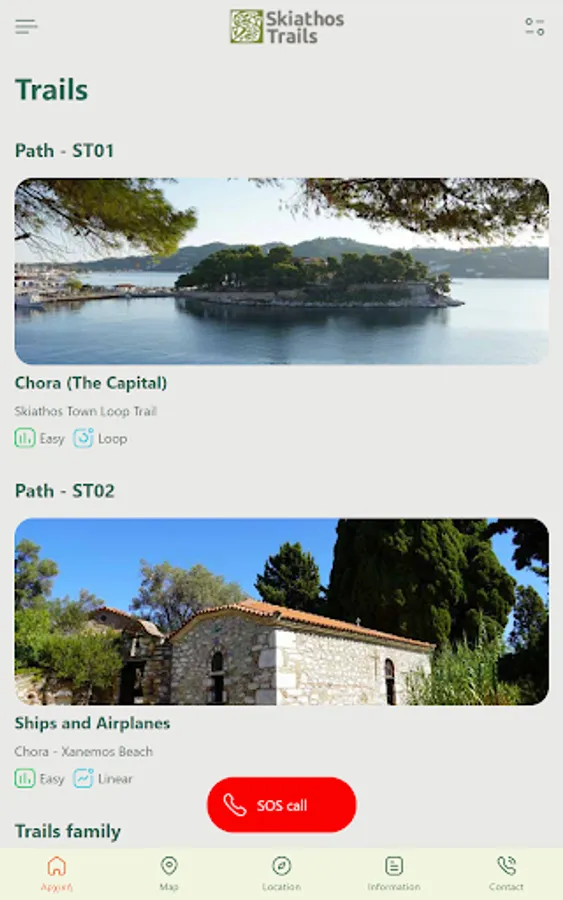 Skiathos Trails is a project of the Municipality of Skiathos, which aims at highlighting the natural and cultural richness of the island through a well planned network of hiking routes. With this free app we invite you to live an unforgettable hiking experience on our beautiful island. The app also works as a digital guide, providing information about points of interest along the routes. The maps can also work offline.